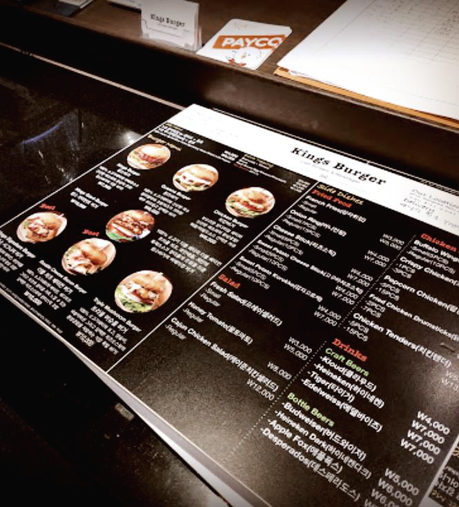 메뉴판을 쓰윽~ 훑어보고 킹스버거의 시그니처 메뉴인 킹스 시그니처 버거(Kings Signature Burger)를 주문해봅니다.